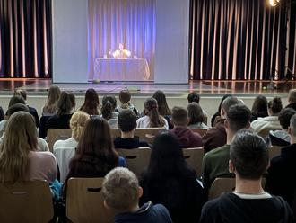 Ein Ring, dessen Weg vom KZ Auschwitz nach Tel Aviv unergründlich bleibt, bildet den Mittelpunkt eines Theaterstücks, das sich die Schülerinnen und Schüler der Jahrgangsstufen 9 und 10 der Freiherr-vom-Stein-Schule Hünfelden im wahrsten Sinne des Wortes zu Gemüte führen durften.