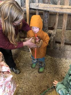 Wieder zurück auf dem Sintersbacher Hof ging es für eine Gruppe in den Hühnerstall, die andere Gruppe fertigte tolle Bilder mit Kartoffelstempeln an, natürlich nur mit Kartoffeln, die zum Verzehr nicht geeignet sind.