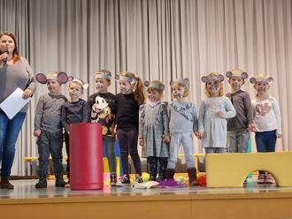 Um so mehr war es für die Senior*innen und Senioren eine Freude, dass die Kinder der Kita "Pusteblume Neesbach" das Programm unterstützend mitgestalten konnten. So übten die Kinder gemeinsam mit Frau Dittrich und Frau Zubrod, das Rollenspiel von "Frederick" ein. Das Stück handelte von einer Maus, Frederick, die ganz andere Wintervorräte gesammelt hatte, als die anderen Feldmäuse. Während Maiskörner, Weizenkörner, Stroh, Nüsse und Beeren die Futterspeicher füllten, sammelte Frederick Sonnenstrahlen, bunte Farben und Wörter. Als die Wintervorräte zu Neige gingen, schickte Frederick den Mäusen die Erinnerungen an die wärmenden Sonnenstrahlen, die Erinnerungen an die bunten Farben der Natur, von der bunten Blumenwiese. Zum Ende der Winterschlafenszeit schickte Frederick noch Wörter, die er in Gedichtform seinen Mäusefreunden präsentierte. Die Inhalte waren Glück, Freude, Wärme, Liebe.
