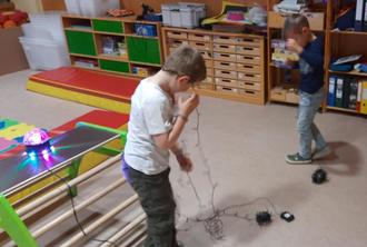 Diese vier Kinder planten mit Begleitung einer Erzieherin wie sie sich die Disco vorstellen. Der Wunsch nach einer Tanzfläche, Musik zum Abrocken, Discokugel, bunten Lichtern und Popcorn war schnell abgestimmt. Die Kinder brachten die benötigten Dinge, wie Discokugel, Lichterketten und Popcornmaschine eigenständig von zu Hause mit und eine Playlist mit den gewünschten Liedern wurde im Kindergarten zusammengestellt.