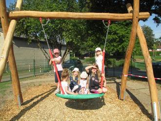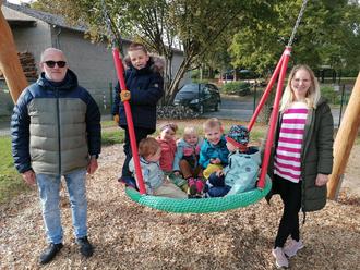 Eine große Nestschaukel, mit Platz für bis zu 6 Kindern, wurde durch den Bauhof auf dem Außengelände aufgebaut.