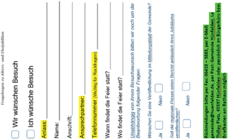 zur Gewährleistung und zum Schutz personenbezogenen Daten wird die Gemeinde Hünfelden künftig die wöchentlichen Auskünfte zu Ehe- und Altersjubiläen (ab dem 80sten Geburtstag alle 5 Jahre oder 50.-, 60.-, 65.-, 70.-Ehejubiläen) im Mitteilungsblatt komplett einstellen. Sollte dennoch eine Veröffentlichung und /oder eine Gratulation durch Vertreter der Gemeinde Hünfelden gewünscht sein, kann dies durch Abgabe des ebenfalls im MTB veröffentlichten Fragenbogens – fünf Wochen vor dem Jubiläumsdatum - bei der Gemeindeverwaltung, im Bürgerbüro entsprechend vorgemerkt werden. Ohne persönliche Einwilligung können keine personenbezogenen Daten mehr veröffentlicht werden!