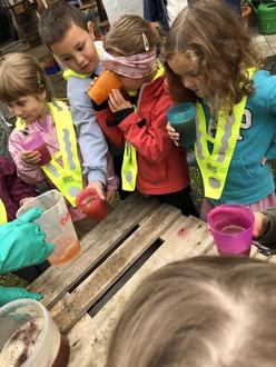 Als Geschenk haben wir ganz viel Apfelsaft bekommen für die anderen Kinder im Kindergarten. Der war so lecker.