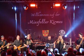 Am Freitagnachmittag wurde der große Kirmesbaum an der Erich-Valeske-Halle gestellt und gleichzeitig liefen die letzten Vorbereitungen für das Highlight am Freitagabend. Seit einigen Wochen fieberten die Organisatoren und Besucher bereits auf diesen Abend hin. Die hessische Rockband „Rodgau Monotones“ hatten sich in Mensfelden angekündigt und durch die erhöhte Anfrage an Karten war der Abend bereits eine Woche zuvor ausverkauft. Aus ganz Hessen angereist warteten die Zuschauer sehnsüchtig auf den Startschuss. Die Halle war mit 650 Gästen rappelvoll und das Publikum bewies seine Textsicherheit und tanzte und sang fröhlich mit. Davon waren die Bandmitglieder und Gründer und Sänger Peter „Osti“ Osterwald und Sängerin Kerstin Pfau überzeugt. Parallel zum Rockabend konnten die Zuschauer in der intensiv geschmückten Sektbar zum Thema „Malleparty in der Strandbar“ mit DJ Rudi den Dancefloor zum Beben bringen. Nun stand ein weiteres Highlight für den Freitagabend auf dem Programm: Die Coverband „Fistful of Dollars“ hatte richtig Bock mit dem stimmungsvollen Publikum im Saal zu feiern. Der gebürtige Miesfeller Gitarrist der Band, Paul Schöllgen, fasste den Abend wie folgt zusammen: „Es war uns eine Ehre mit den Rodgau Monotones die Bühne zu teilen und vor einer ausverkauften Halle mit dem Publikum abzurocken! Ein Abend, den wir nicht so schnell vergessen werden!“
