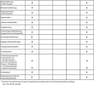 Abweichende Regelungen gibt es für Freischneider, Grastrimmer bzw. Graskantenschneider, Laubbläser oder Laubsammler. Diese dürfen an Werktagen nur in den Zeiten von 09:00 – 13:00 Uhr und von 15:00 – 17:00 Uhr betrieben werden. Sind diese Geräte jedoch mit dem Europäischen Umweltzeichen als umweltschonend gekennzeichnet, dürfen sie ebenfalls von 07:00 bis 20:00 Uhr betrieben werden.