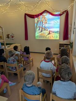 Die Kinder lauschen gespannt, lachen und staunen. So wird der Herbst in der Kita nicht nur draußen, sondern auch drinnen zu einem farbenfrohen Erlebnis. Und eines ist sicher: Auf die nächsten Bilderbuchkino-Vorstellungen freuen sich alle schon riesig!