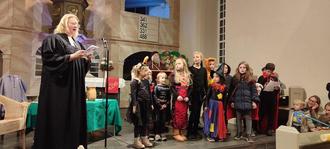 Am Nachmittag stieg im v. Gemeindehaus ein Kinderfest unter dem Motto „Reformation meets Halloween“. Toll kostümierte Kinder beschäftigten sich spielerisch mit dem Thema „Angst“ und was dagegen hilft. Ihre Ergebnisse präsentierten sie mit lauten Mutmachrufen und einem Lied über Martin Luther zu Beginn des Reformationsgottesdienstes in der ev. Pfarrkirche.