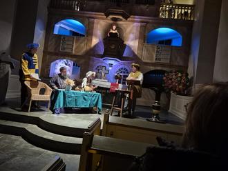 Der Höhepunkt des Gottesdienstes war das kleine Theaterstück aus der Feder des Kirberger KV-Vorsitzenden Arndt Preußer, das das mutige Eintreten des Kirberger Pfarrers Christoph Maler für den evanglischen Glauben zum Inhalt hatte.