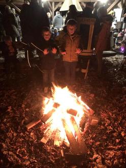 Am Grillplatz angekommen erwartete uns das traditionelle Martinsfeuer. Natürlich gab es auch Weckmänner, Würstchen, Brezeln und warme Getränke.