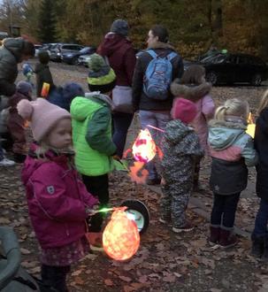 Der Beginn war bei der Waldschänke, in welche die Kita noch immer ausgelagert ist. Um 17 Uhr waren zahlreiche Teilnehmer auf dem Parkplatz der Waldschänke versammelt um das Martinsspiel der Vorschulkinder zu sehen.