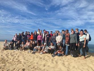Neben den Theaterproben erkundeten die Schülerinnen und Schüler die Region mit Ausflügen zur imposanten Düne von Pyla und nach Arcachon. Ein weiterer Höhepunkt war der Besuch der Stadt Bordeaux, bei dem sie durch eine Stadtrallye die Hauptattraktionen der Stadt entdeckten. Den Abschluss dieses Tages bildete der Besuch eines HipHop-Konzerts der deutsch-französischen Band „Zweierpasch“, das an der renommierten Universität Science-Po stattfand. Eine zusätzliche Exkursion führte sie nach Saint-Emilion, wo sie eine interessante Führung durch die Geschichte der Stadt erlebten.