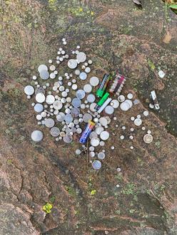 Unbekannte haben über das gesamte Areal des Mensfelder Kopfes Batterien (meist Knopfzellen) und Tabletten verstreut.
