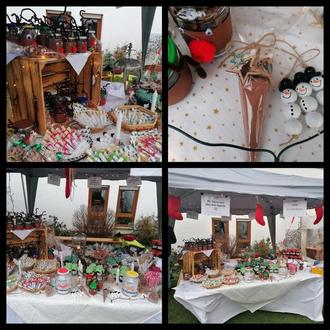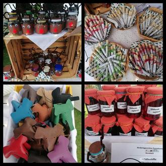 Wie im vergangenen Jahr gab es von der Kita einen Stand, in dem die Kolleg*innen in der Kita hergestellte Sachen, wie Glühweinaufstrich, Schokoelche, Rosen- und Lavendelzucker, Rosmarinsalz, Kräutersalz, „Handtaschengedöns-Schachteln“ für die Handtasche, Leder Elefantenanhänger…auf Spendenbasis angeboten hatten.