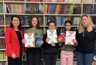 Auch in diesem Jahr zeichnete Schulleiterin Judith Lehnert die Siegerinnen und den Sieger aus und beglückwünschte sie zu ihren gelungenen Buchvorstellungen. Alle Siegerkinder dürfen sich über Buchgutscheine freuen, die der Förderverein der Schule gestiftet hat.