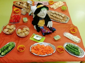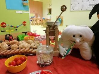 Es gab ein Angebot von verschiedenen Ausmalbildern, ein Video von der Hexe Irma konnte angeschaut werden, was wir als Bilderbuchvideo selbst aufgenommen hatten, unterschiedliche Bilderbuchbetrachtungen wurden angeboten, eine CD mit dem Zahnputzlied konnte angehört werden, gesunde und ungesunde Lebensmittel konnten sortiert werden, die Kinder konnten selbst Brot backen und mit der geliehenen Haferpresse selbst Haferflocken herstellen, im Rollenspielbereich nutzten die Kinder den kleinen Zahnarztstuhl, den wir bei AKJ-Limburg ausgeliehen hatten, es gab viele Aktionen die angeboten und interessiert genutzt wurden. Wie im vergangenen Jahr begrüßten wir Frau Dr. Hinrichs mit ihrem Team im Stuhlkreis, die den Kindern zum Thema Zahngesundheit einiges erzählt hatte. Anschließend gingen die Kinder mit dem Praxisteam ins Bad, um gemeinsam die Zähne zu putzen. Zahnputzübungen nach KAI wurden hier durchgeführt und jedes Kind hat eine Zahnbürste geschenkt bekommen. Wir danken unserer "Patenzahnärztin" Frau Dr. Hinrichs aus Ohren für die Spende, ihren Besuch in der Einrichtung und freuen uns auf den Besuch der Vorschulkinder in ihrer Praxis.