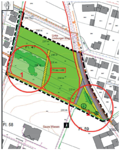 Nach Fertigstellung der Erschließungsarbeiten wird die geplante Grünfläche entlang des Diezer Weges wieder bepflanzt.