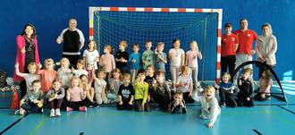 Nach einer kurzen Begrüßung wurden unterschiedliche Lauf- und Fangspiele absolviert. Danach konnten die Erstklässler ihre koordinativen Fähigkeiten an unterschiedlichen Stationen, wie z.B. an den Tauen schwingen, an der schiefen Ebene rollen oder Kegel abschießen unter Beweis stellen. Dazu gab es noch ein kleines Fußballfeld mit Minitoren und einen Rollbrett-Bereich. Auch das für Kinder faszinierende Schwungtuch durfte nicht fehlen.