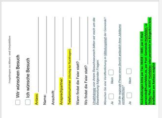 zur Gewährleistung und zum Schutz personenbezogenen Daten wird die Gemeinde Hünfelden künftig die wöchentlichen Auskünfte zu Ehe- und Altersjubiläen (ab dem 80sten Geburtstag alle 5 Jahre oder 50.-, 60.-, 65.-, 70.-Ehejubiläen) im Mitteilungsblatt komplett einstellen. Sollte dennoch eine Veröffentlichung und /oder eine Gratulation durch Vertreter der Gemeinde Hünfelden gewünscht sein, kann dies durch Abgabe des ebenfalls im MTB veröffentlichten Fragebogens – fünf Wochen vor dem Jubiläumsdatum - bei der Gemeindeverwaltung, im Bürgerbüro entsprechend vorgemerkt werden. Ohne persönliche Einwilligung können keine personenbezogenen Daten mehr veröffentlicht werden!