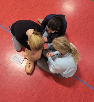 Klassen einen Wiederbelebungskurs an 12 schuleigenen Reanimationspuppen.