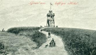 Eine Postkarte zeigt den Turm, den es einmal auf dem Greifenberg gab. 1919 brannte er ab