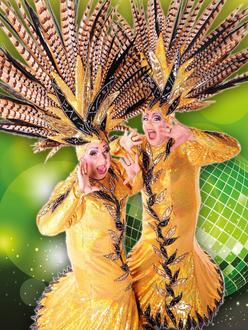 Die beiden Travestie-Torpedos nehmen ihr Publikum mit auf eine Reise durch den internationalen Pop und Schlager der vergangenen Dekaden. Stimmgewaltig, voluminös und vor allem „LIVE“. Ein als Ufo mit Lichteffekten bestücktes Taxi, ein komplett gedeckter Tisch im italienischen Style, ein ganzes Casino samt Roulettetisch, zwei bunte Vogelstrauße. All diese Ideen wurden den Künstlern mit viel Liebe auf den Leib geschneidert und sind nun noch einmal zu bewundern.