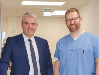 Geschäftsführer Guido Wernert [links] mit dem neuen Chefarzt der Zentralen Notaufnahme Dr. Andreas Krämer [rechts]
