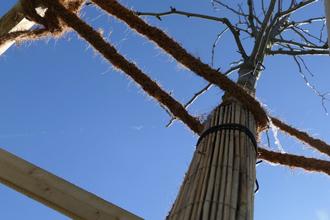 Eine neue gepflanzte Gleditschie am Spielplatz am Bürgerhaus in Eschhofen. Der Baum benötigt zunächst einmal Hilfe beim Wachstum und Halt. Der Baum gilt als überaus klimaresilient.