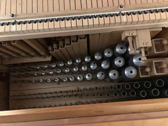 Pfeifenreihen der Truhenorgel in der Limburger Pallottinerkirche.