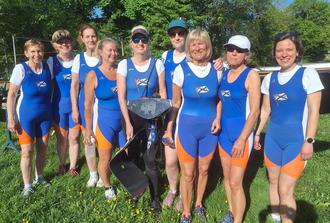 Die erfolgreichen Masters-Frauen im Achter der Altersklasse F (v. l.): Gabi Druck-Wagner, Evi Schöpplein, Ingrid Förster, Iris Weingarten, Simone Haubrich, Anna-Lotta Namislow-Hackenbruch, Iris Rompel, Gaby Weiss und Anja Osterland.