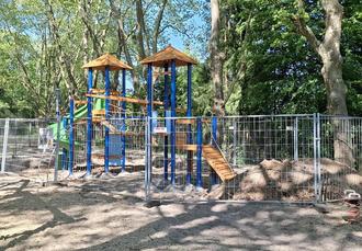 Das neue bunte Großspielgerät auf dem Spielplatz am Schafsberg wird in ungefähr acht Wochen einsatzbereit sein.
