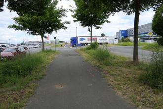 Die Hannelore-Hingott-Straße ist die Hauptachse zur Erschließung des Gewerbegebiets. Die Gesamtbreite der Straßenparzellen beträgt im gesamten Gebiet 25 Meter. Am linken Fahrbahnrand sind in Teilen der Erschließungsstraßen derzeit asphaltierte Parkbuchten als Längsaufsteller angeordnet. Die Anordnung der Längsaufsteller, auf der in Fahrtrichtung linken Seite, wurde im Rahmen eines Sicherheitsaudits als erhebliches Sicherheitsrisiko bemängelt.