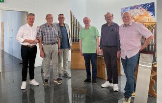 Mitglieder der Gesellschaft Tavola d’arte Limburg besuchten das Orgel Art Museum Rhein-Nahe in Windesheim (bei Bingen); v.l.n.r.: Thomas Hecker, Alfred Runkler, Stefan Bohlmann, Frank Sittel, Direktor Wolfgang Oberlinger und Dr. Gabriel Hefele.