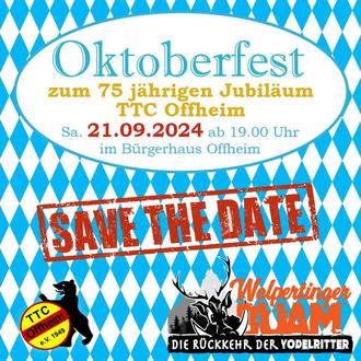 Anlässlich zum 75 jährigen bestehen des TTC Offheim, findet am 21.09.2024 das Oktoberfest, mit Live-Musik von den Wolpertinger Buam statt.
