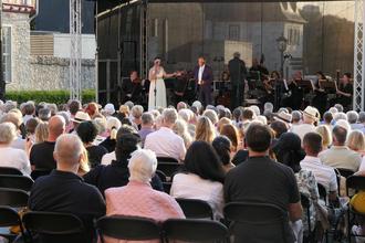 Limburg in Limburg auf der Bühne, das war dann auch für Bürgermeister Dr. Marius Hahn eine Besonderheit. Als Gastgeber der „Opera Classica Europa“ war er mit dem Abend mehr als zufrieden: „Manchmal passt alles. Das Programm, das Wetter, ein dankbares und zahlreich erschienenes Publikum und nicht zuletzt der Platz vor dem Dom. Heute war so ein Abend.“ Und auch Hilmar von Schenck, Leiter des Amts für Stadtmarketing und Tourismus, blickte mehr als zufrieden auf den Abend, zu dem sich rund 450 Zuschauende eingefunden hatten: „Nach einem sehr zögerlich anlaufenden Kartenverkauf ist das Interesse schließlich doch so groß gewesen, dass wir am Ende noch zusätzliche Stuhlreihen aufbauen mussten.“