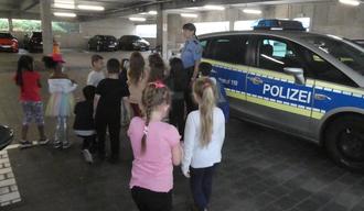 Die Kinder durften sich sogar in das Polizeiauto setzen und die Sirene wurde angemacht. Die Kinder sollen die Beamten und Beamtinnen als freundliche Helfer erfahren, an die man sich in der Not wenden kann. Nach 2 Stunden, die gefüllt waren mit Informationen, haben die Kinder wieder ihren Heimweg mit den Fachkräften Violet, Hannah und Patrick angetreten.