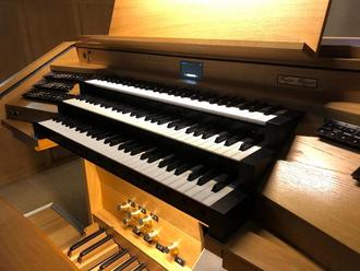 Spieltisch der großen Orgel in der Limburger Pallottinerkirche. Foto: Frank Sittel