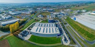 Blick auf die Gewerbegebiete entlang der Kapellenstraße in Offheim, in denen zahlreiche Firmen und Betriebe ihren Standort haben. Die Gewerbesteuer ist die wichtigste Einnahmequelle der Stadt.