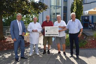 Scheckübergabe am St. Vincenz Krankenhaus Limburg (v.l.n.r.): Vincenz-Geschäftsführer Guido Wernert, Chefarzt Dr. Peter Scheler, Josef Heinl (Tanja Lorenz‘ Vater, Niederbrechen), Stifter Max Stillger und Vincenz-Stiftungsvorstand Martin Richard.