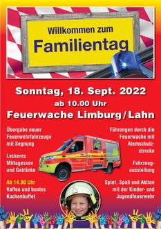 Die Feuerwehr Limburg lädt ein zum Familientag am 18.September 2022 ab 10:00 Uhr in die Feuerwache Limburg.