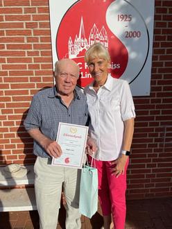 Jürgen Lanz bei der Ehrung mit Präsidentin Uschi Wilson