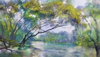 Die Ausstellung „Flussland“ zeigt seit dem 15. September nicht nur die Schönheit der Lahn, die eindrucksvoll von der Künstlerin Renate Kuby auf die Leinwand gebracht wurde. Die farbenprächtigen und lebendigen Bilder werden ergänzt durch Pflanzenfantasien von der Künstlerin Kathrin Mock und filigrane Holzarbeiten von Christine Wenzhöfer.