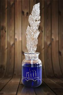 Der Hans-im-Glück-Preis wird durch ein Tintenfass mit Schreibfeder aus Glas symbolisiert.