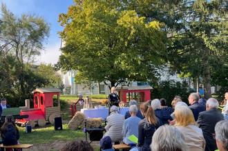 Erntedankgottesdienst bei herrlichem Sonnenschein auf dem Gelände der Kita Blumenrod. Nach dem Gottesdienst gab es Suppe, Brot und Würstchen sowie Kaffee und Kuchen. Kinderschminken, Kürbis bemalen, Fotobox und Livemusik von ukrainischen Künstlern erfreute die Besucher des Gemeindefestes.