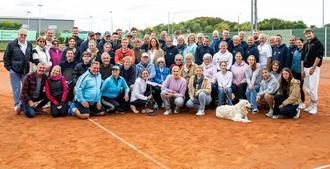 Gruppenfoto der Turnierteilnehmer mit Ehrengästen und Hund