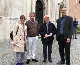 v.l.n.r.: Dr. Julia Waider, Thomas Hecker und Frank Sittel im Gespräch mit Professor Stephan Zippe (München) im Kloster Weltenburg (Donau).