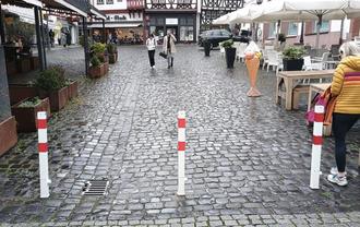 Noch wird die Zufahrt zum Limburg Kornmarkt mit Pollern versperrt, die noch mit der Hand bedient werden. Das führt auch dazu, dass der Kornmarkt auch außerhalb der Be- und Entladezeiten befahrbar ist. Das wird sich mit der neuen Anlage ändern.