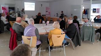 Als Referent führte Dr. Hanno Heil, Lehrbeauftragter für Pastoraltheologie und diakonische Theologie, PTH Vallendar, durch das Bezirksforum. "Es geht um eine Wirtschaft, die der katholischen Soziallehre entspricht", so der Gemeinwohlökonomie-Experte. "Und es geht folglich darum, welche Zukunft unsere Kinder haben", so Heil weiter. "Denn die Akzeptanz des derzeitigen Wirtschaftssystems schwindet rapide, das Vertrauen in diese Wirtschaft, die ein moderner Kapitalismus ist, geht stark zurück". Er umschrieb das Wesen der Gemeinwohlökonomie mit einem Zitat von Werner Sombar +1941 (Soziologe): "Geld verdienen ist nicht das Ziel der Wirtschaft. Ware gegen Ware tauschen, ist das Ziel. Eine so verstandene Subsistenzwirtschaft hat die Funktion, Leben zu erhalten".