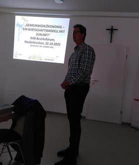 Nach einer Begrüßung von Michael Ziegler und einem spirituellen und motivierenden Impuls durch Bernd Hannappel (beide Bezirksleitungsleitungsteam) gingen Gäste und Mitglieder der Katholischen Arbeitnehmer-Bewegung (KAB) das Thema „Gemeinwohlökonomie“ an und stellten somit die Systemfrage.
