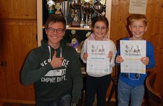 Die Schachjugendgruppe Limburg konnte kürzlich zwei weitere engagierte, talentierte und schachbegeisterte junge Mitglieder mit Diplomen auszeichnen: Stolze 100 von 100 möglichen Punkten haben jeweils Viktoria Jossifidis (8) und Luis Samel (8) erreicht. Beide sind erst seit kurzer Zeit Mitglied der Schachjugendgruppe Limburg. Luis wurde das Springer- und Viktoria das Bauerndiplom durch Jugendtrainer Corvin Zumpe (18) überreicht. Jugendleiter Luis Metzner hob die Besonderheit der beiden hervor: „So schnell und so erfolgreich zu sein, zeigt das große Talent, welches in ihnen steckt und die begeisternde Arbeit des Jugendtrainers.“ Die Übungsstunden zum Erwerb der verschiedenen Schachdiplome starten jeweils samstags um 13 Uhr im Vereinsheim am Brückenturm. Schachinteressierte Jugendliche sind jederzeit willkommen!