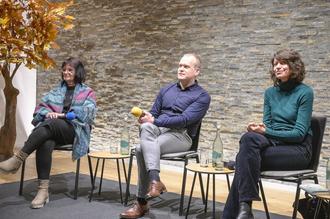 Auf dem Podium: die katholische Trauerseelsorgerin Maria Horsel, die freie Trauerrednerin Louise Brown und der Bestattermeister Benedikt Kirchberg. Der konnte gleich eingangs mit vielen praktischen Fakten rund um den Tod für Klarheit sorgen. „Wir sprechen von Verstorbenen, nicht von Leichen“, betonte er und auch, dass die Bestatter oft die ersten Ansprechpartner für Hinterbliebene nach Eintritt des Todes sind. Dieser passiert immer seltener zu Hause, führte der Fachmann weiter aus, meist sterben Menschen im Krankenhaus oder im Seniorenwohnheim.